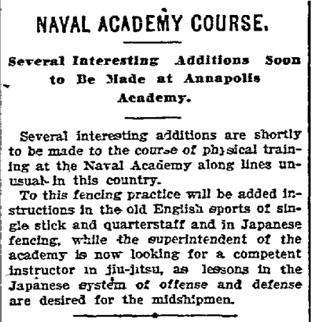 Gekken at the time got a lot of press in the media and was practiced in Honolulu by Japanese immigrants in 1896 at the Sunrise Club and was apparently destined to be taught in Annapolis Naval Academy in 1904, possibly following the Japanese victories in the ongoing Russo-Japanese war. Was it ever undertaken? More investigation on this matter needs to be done.