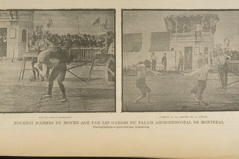 After further research, I have finally found out what happened to Legault and his Academy. After the scandal, Legault moved to La Tuque where he became inspector for the Transcontinental railway. He passed away there in 1911 after a battle with paralysis.(Le Devoir, October 19th 1911). It seems that his Academy had already been taken over by one of his long time provost, Louis Chartrand – who is presumably one of the two men fighting rapier and dagger in the picture- probably following his appointment as chief of police. It is currently not clear when the Academy ceased to be, but it still seems active in 1926. Louis passed away in 1944, and failed to pass on his passion to his children, one of them famous Quebec syndicalist Michel Chartrand, apparently to his great chagrin.