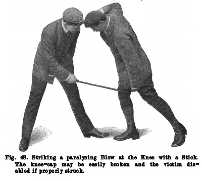 Percy Longhurst, a student of Bartitsu, also gives us a couple of tricks for using a blackthorn stick with the usual Irish grip in 1918.[25] One of them, the blow on the forearm or elbow is often repeated in newspapers articles of the time.