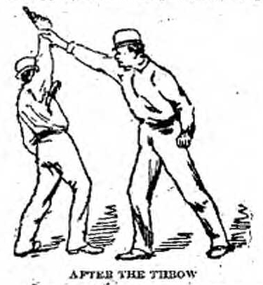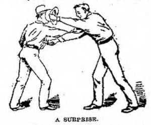 Twisting Dan’s best trick was a good one. He would dodge around his man, suddenly grab his knife arm by the elbow, twist him around with the jerk and stab him in the back. He made a grab at a slippery little chap once, though, and missed the elbow, and his friends buried him right there.