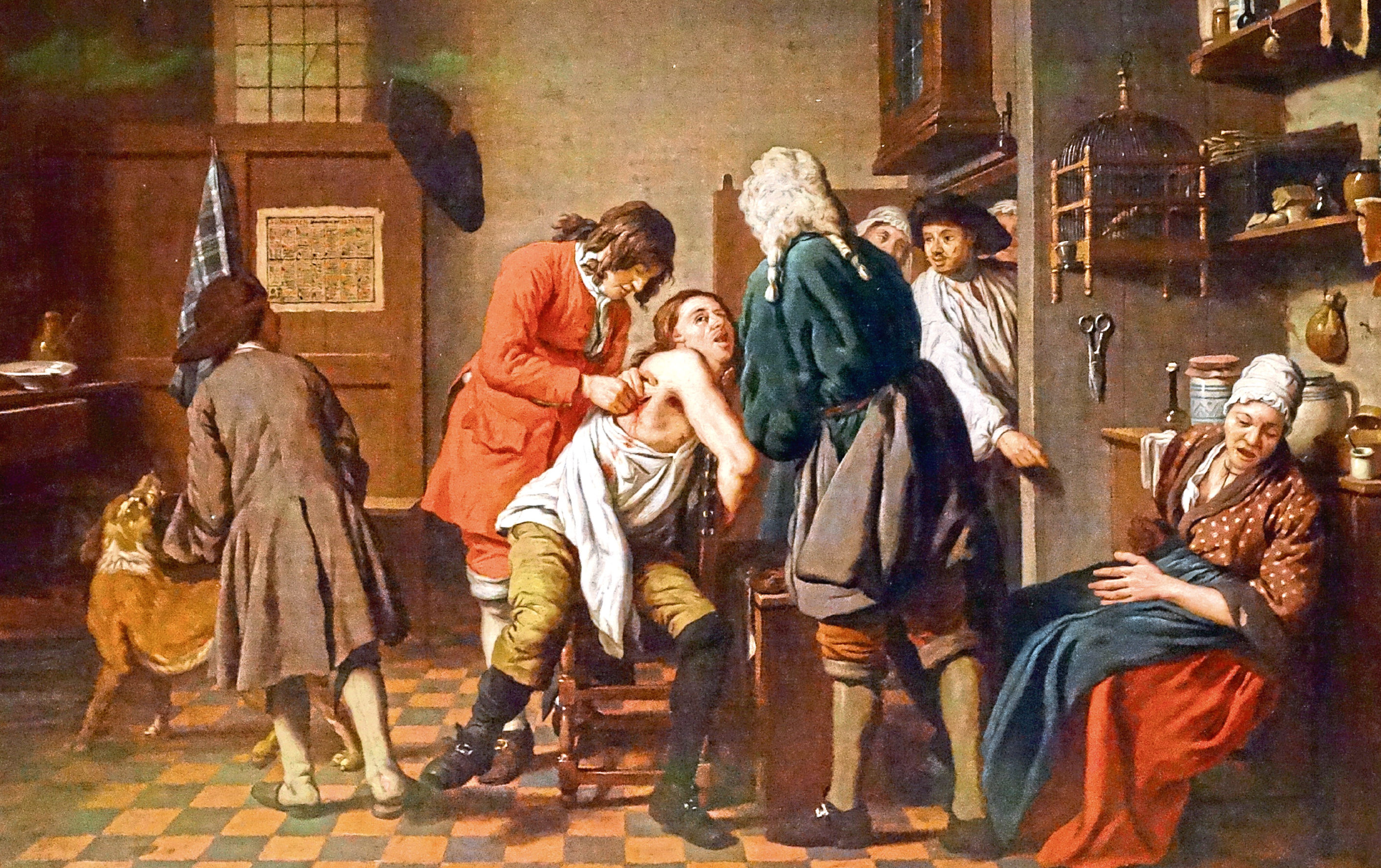 Gaspare Traversi – The operation, 1754. Showing a surgeon examining a wound, probably from a fight, with a surgical probe.