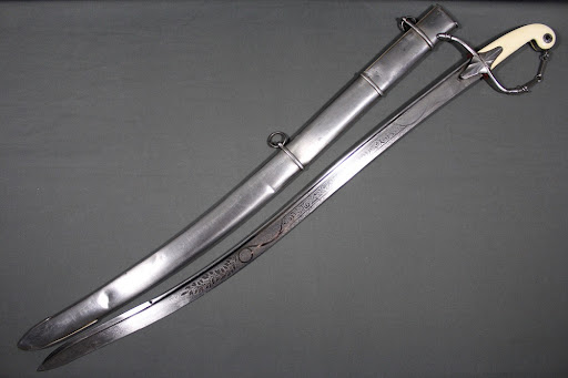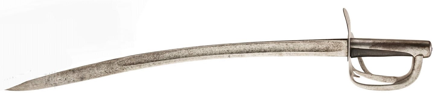 His memoir was noticed internationally, not just in Britain, but also in Bavaria, where major Xylander made note of Marey-Monge’s yataghan sabre, saying that it performed well in tests, though I do not know of a Bavarian sabre model with a yataghan blade. It’s important to note that Marey-Monge was not the first person to put such a blade on European sabres, and while France did not adopt the concept officially, other armies did, such as Sweden and Prussia, though mainly in the form of naval sabres. It is unclear if these were inspired by Marey, but they ignore too many of his principles to really call them Marey sabres. Here are a few known examples, some made before the birth of Marey.