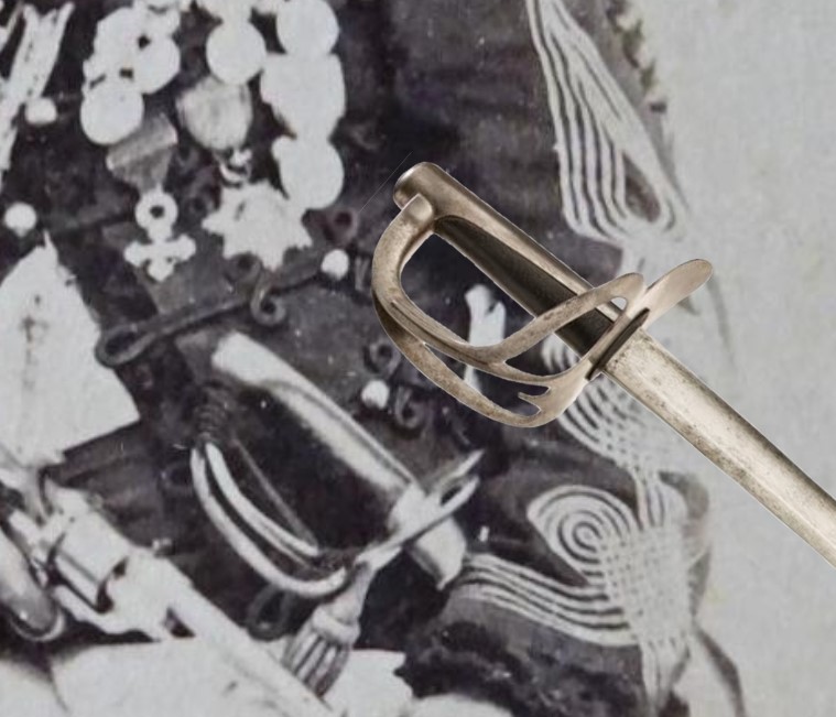 This excerpt gets cited here and there, usually with discussions over European and Japanese sabres. Yet, little attention was put on exactly what kind of sabre Du Pin carried with him. When one reads Marey’s memoir on swords, it becomes evident that the models he suggests are far from the usual European patterns of the time. I did managed to find a few portraits of Du Pin showing his sabre, mostly dating from the French intervention in Mexico, which was a year after his return from Japan.