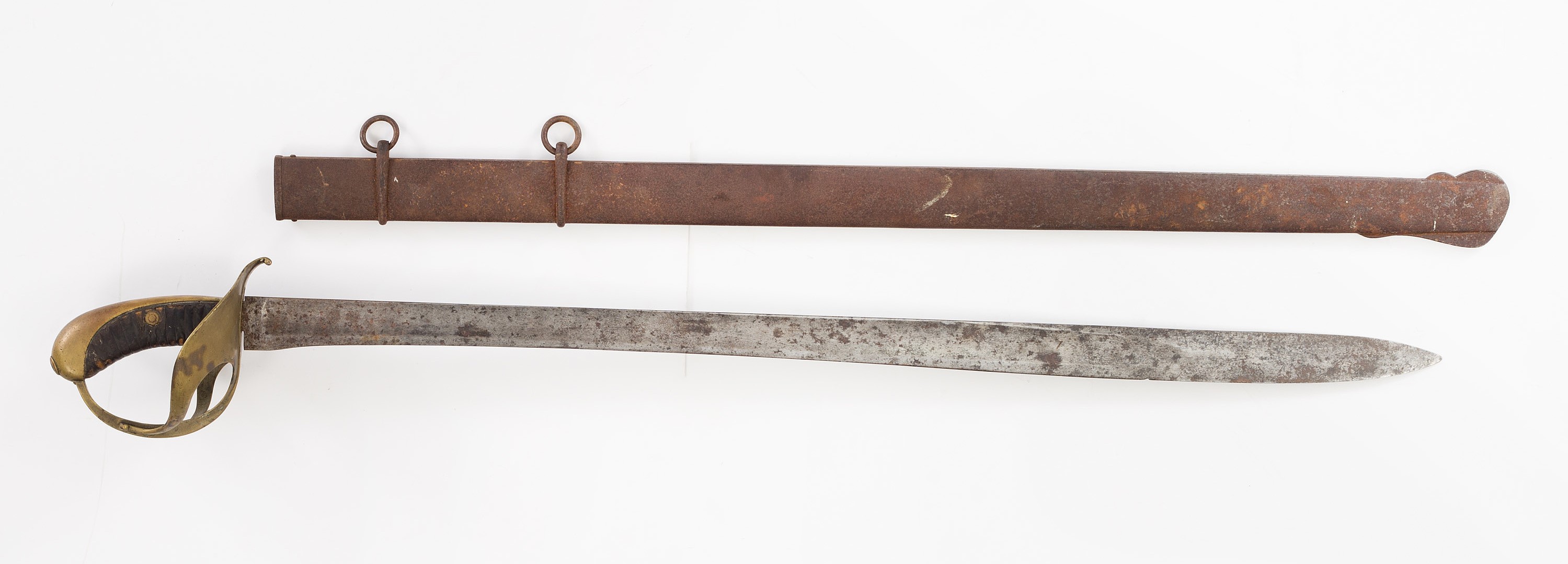 It is difficult to say how this particular scabbard is made. I would suspect it is indeed lined with wood, as most infantry sabres of that time were, but I have no way to say if it is lined up to the mouth. The fact that this scabbard is made of leather, and has brass fittings is also quite interesting. It could indicate that it was made prior to 1855, when iron scabbards were introduced for infantry officers, or it could have been made for an adjudant, as they retained the leather scabbard until the 1870s.