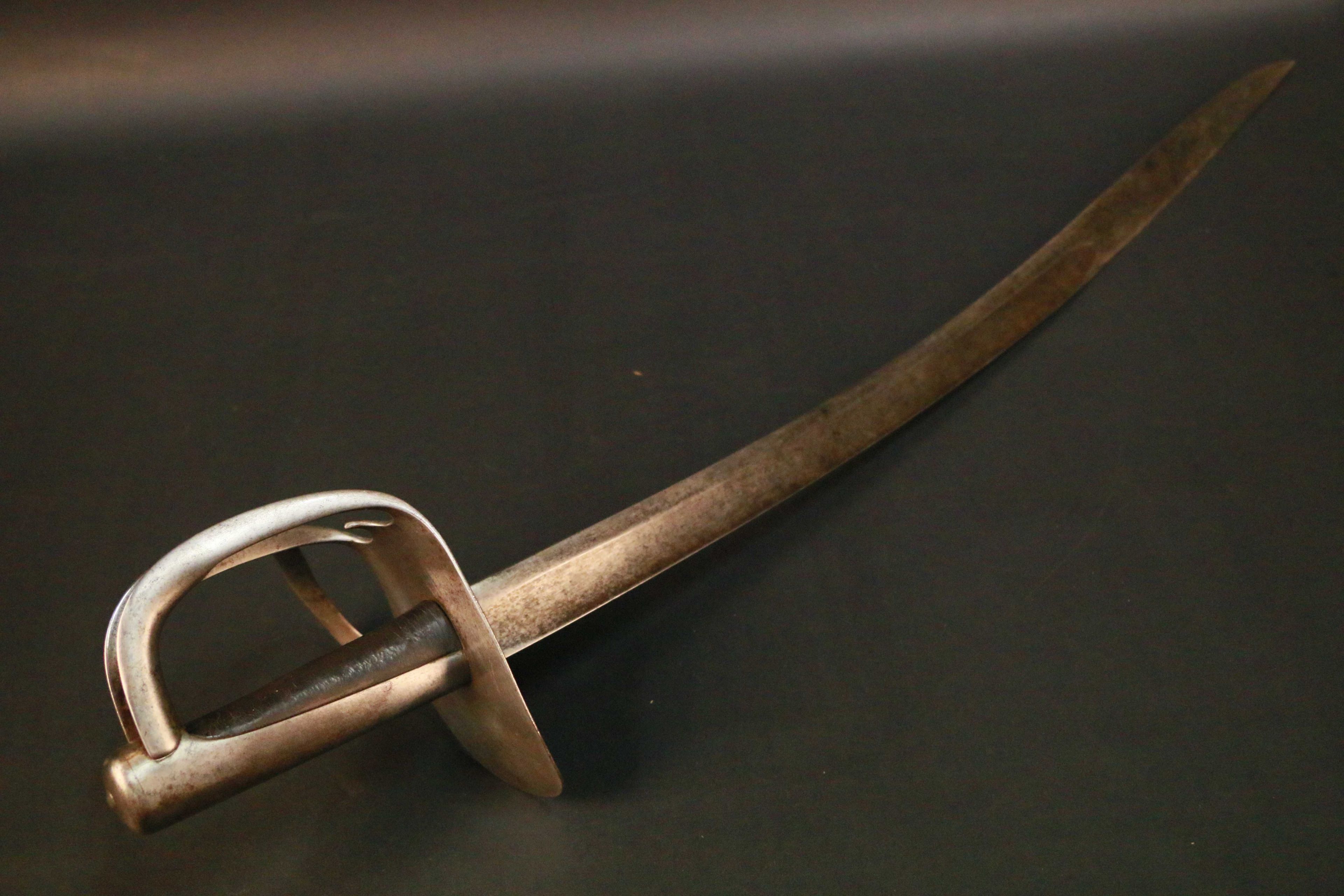 The sabre we are shown does not quite fit any of the usual sabres carried by the French army, at least not as far as the hilt is concerned. I was left perplexed, until, a few weeks later, I stumbled on an auction listing in France which immediately became recognizable. I had seen this sabre before, usually advertised as an unknown “yataghan cutlass”, but this time I was certain I knew what it was.