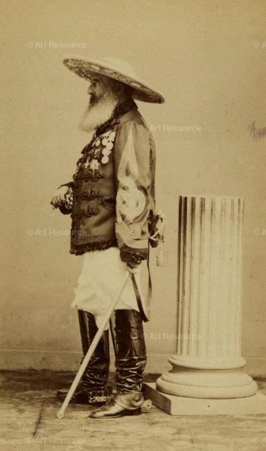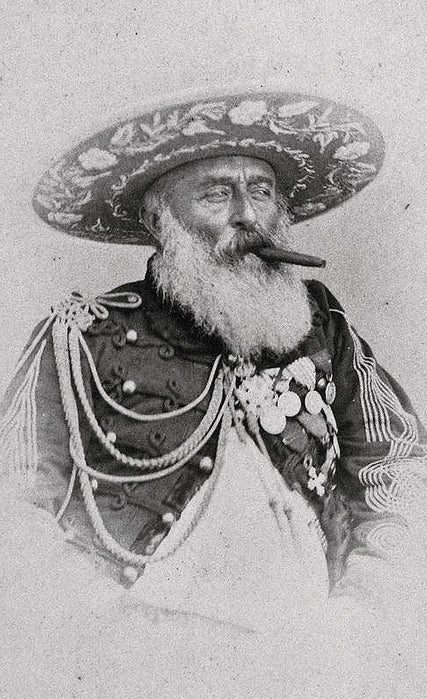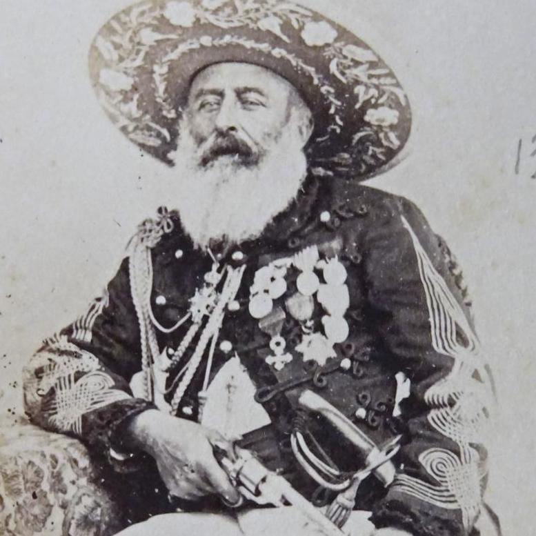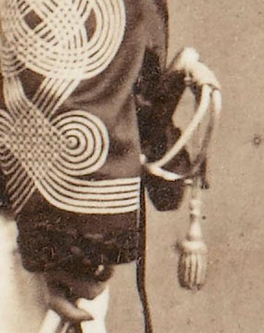 This excerpt gets cited here and there, usually with discussions over European and Japanese sabres. Yet, little attention was put on exactly what kind of sabre Du Pin carried with him. When one reads Marey’s memoir on swords, it becomes evident that the models he suggests are far from the usual European patterns of the time. I did managed to find a few portraits of Du Pin showing his sabre, mostly dating from the French intervention in Mexico, which was a year after his return from Japan.