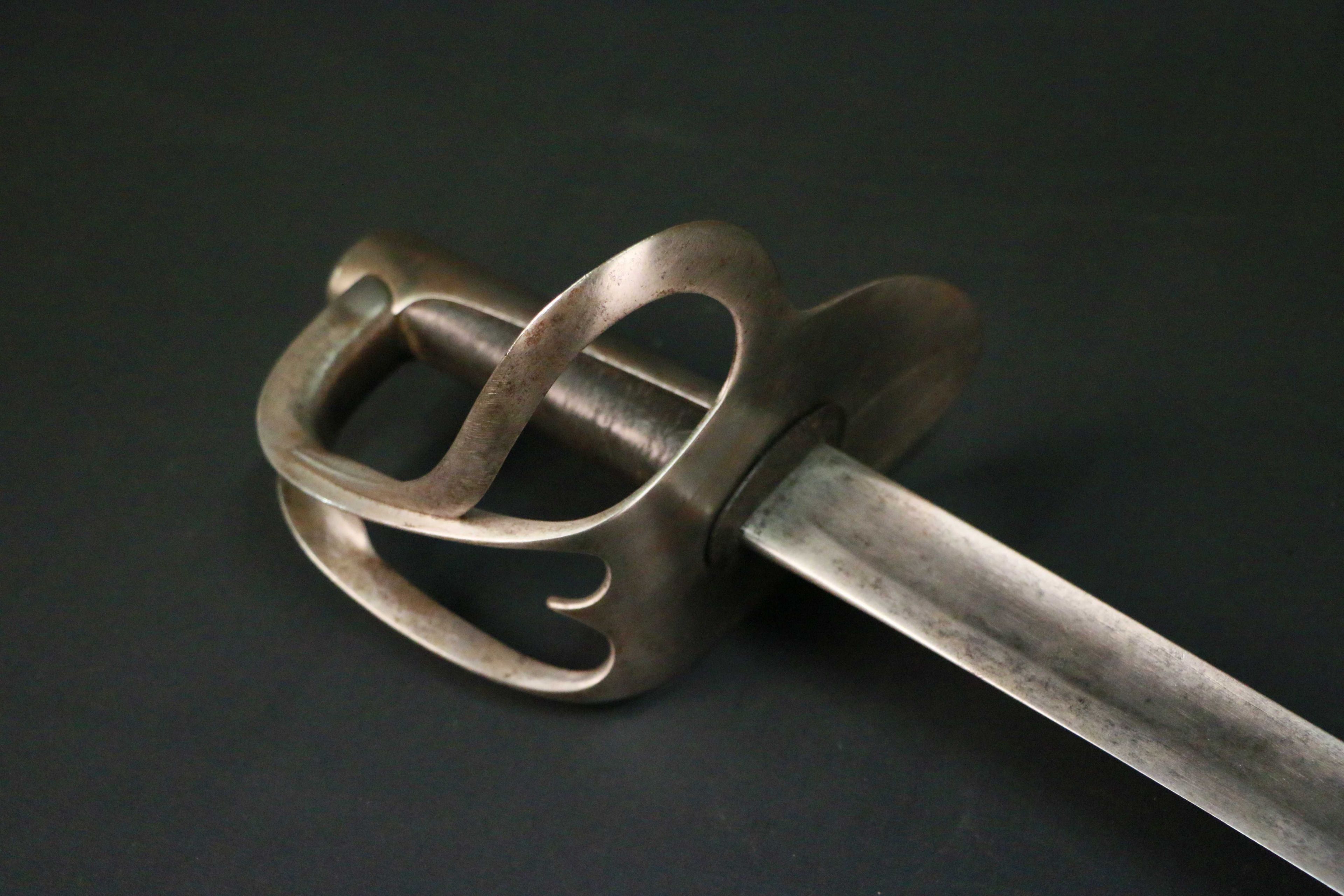 While no sword-knot is currently known to exist for these sabres, it is interesting to see that the sword does not have any slit around the pommel to insert one. It would need to be tied higher on th main branch, as Marey suggest.