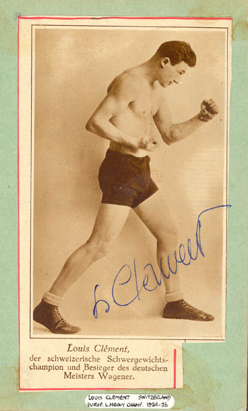 Interestingly, not much has been published about Vigny after or even before his time in London. I suspect this may be due to the language barrier, as most of these documents would be in French. Romain was gracious enough to look for Vigny’s eulogy in Swiss newspapers. The article he unearthed reveals to us some of the later accomplishments of the sportsman, including having as a provost the Swiss boxing champion Louis Clément Thioly (or Louis Clément). Clément won the the European light heavyweight title twice in 1924 and 1925-26. He was unfortunately knocked out by Max Schmeling in 1927, which effectively ended his career.