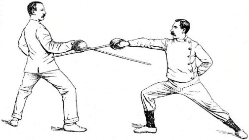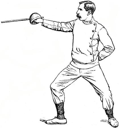 It also removes the leg slipping on every parry, which was criticized by many authors, including Moore who calls it “theatrical style”, along with the Point and Parry practice. He notes that it needlessly slows down ripostes. Interestingly, this hallmark of Angelo’s method is – along with the hanging guard as engagement- probably the least followed when fencing today, and for the same reasons outlined by these authors.